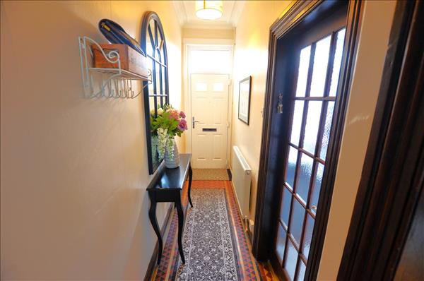 Composite double glazed door to front. Original Minton tiled floor. Radiator. Coving to ceiling and ceiling light fitting. Stairs off to first floor.