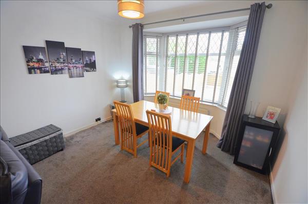 Upvc double glazed bay window to front, carpet to floor, radiator, coving and ceiling light fitting.