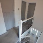 Wood effect flooring. Double glazed frosted window to side elevation. White three piece suite comprising low level push button wc, pedestal wash hand basin with chrome taps and mirror splashback, walk-in corner shower cubicle with glazed opening doors housing a chrome mixer shower. Ladder style heated towel rail. Extractor point.