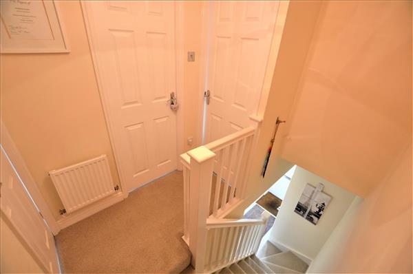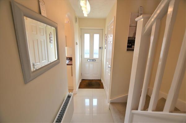 Part glazed entrance door to front, tile to floor (with underfloor electric heating), radiator and ceiling light fitting. Stairs off to first floor.