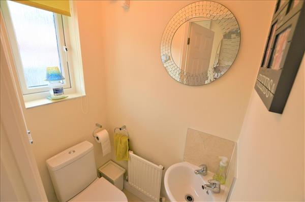 Low level w.c, corner wash hand basin, tile to floor (with underfloor electric heating), radiator and ceiling light fitting. Upvc double glazed window to front.