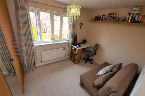 Upvc double glazed window to rear, carpet to floor, fitted wardrobes to one wall, radiator and ceiling light fitting.