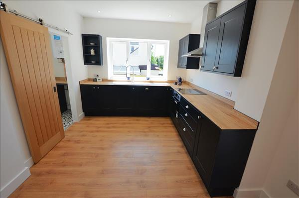 Features a brand new installed kitchen offering a range of wall / base units with contrasting worktops. Includes sink with mixer tap, built in single oven with electric hob & extractor hood above and integrated dishwasher. Finished with laminate wood flooring throughout, radiator, mains smoke alarm and spotlights to ceiling. Upvc double glazed french doors to rear, Upvc double glazed window to side.