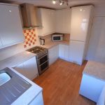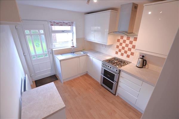 Features a range of wall / base units with contrasting worktops. Includes integrated; dishwasher, washer/dryer & tall fridge/freezer. Also provides space for free standing cooker with extractor hood above, tiled splash backs, stainless steel sink with mixer tap, vinyl to floor, boxed gas central heating boiler, radiator and ceiling light fitting. Upvc double glazed door & window to rear.