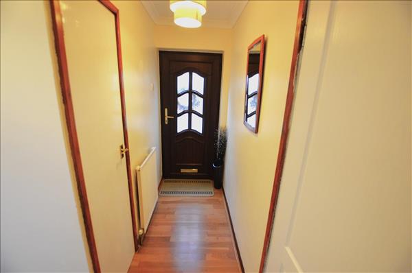 Upvc double glazed door to side, laminate wood effect flooring, radiator, loft access with pull down ladders, useful built in store, coving and ceiling light fittings.