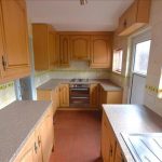 Features a range of wall / base units with contrasting roll edge worktops. Includes built in under counter double oven, four ring electric hob & extractor above, tiled walls, integrated under counter fridge & freezer, integrated washing machine, 1.5 stainless steel sink with mixer tap, tile to floor, under stairs store, boxed electric meter and ceiling light fitting. Upvc double glazed windows to rear. Upvc double glazed door to rear.