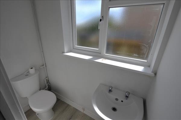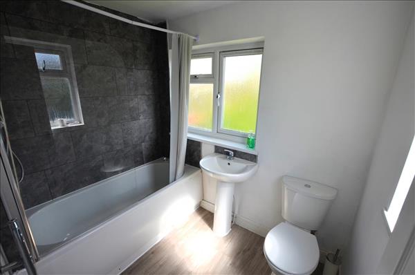 Suite comprising of low level w.c, wash hand basin with mixer tap and panelled bath with mixer tap / shower over. Finished with vinyl to floor, chrome towel radiator and spotlight to ceiling. Upvc double glazed windows to side & rear.