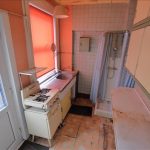 Upvc double glazed door and window to side, fitted wall / base units, stainless steel sink, shower enclosure and ceiling light fitting.