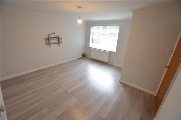Upvc double glazed window to front, laminate wood effect flooring, radiator, coving and ceiling light fitting. Door through to: