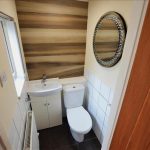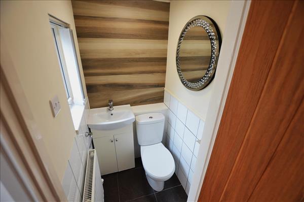 Suite comprising of low level w.c and wash hand basin with mixer tap / built under vanity unit. Finished with tile to floor, radiator, part tiled walls and ceiling light fitting. Upvc double glazed window to side.
