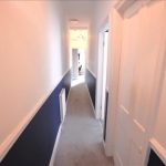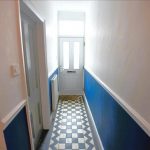Composite double glazed entrance door to front, feature tile floor throughout, radiator, coving and ceiling light fitting. Stairs off to first floor.