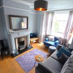 Upvc double glazed bay window to front, exposed wooden floorboards, gas fire with tiled hearth & wooden surround, boxed electric meter, radiator, picture rail, coving and ceiling light fitting.