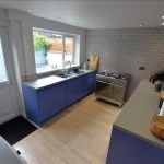 Features a range of Farrow & Ball Pitch Blue base units with contrasting work top. Includes feature tiled wall, space for range cooker, 1.5 Schock granite sink with Smeg mixer tap, tiled splash backs, space for tall fridge/frezzer, space/plumbing for washing machine, wood flooring, radiator and spot lights to ceiling. Upvc double glazed door & window to side (providing access to exterior).