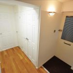 Wooden part glazed door to rear, hard wearing fitted carpet to floor extending onto laminate wood effect flooring, spacious built in store cupboard, phone intercom, built in store housing hot water cylinder, wall light and ceiling light fitting.