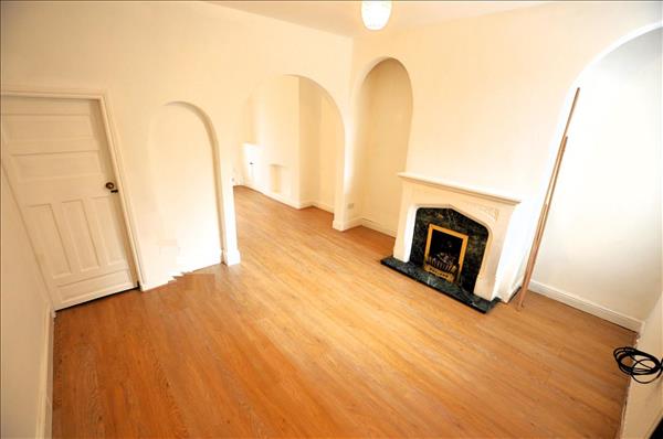 UPVC double glazed window to front, boxed in gas and electric meters, laminated flooring, light, radiator, open arch into;