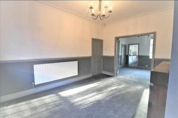 Wood double glazed window to rear, carpet to floor, dado rail, radiator, under stairs store cupboard (with access & steps down to cellar), coving and ceiling light. Door through to: