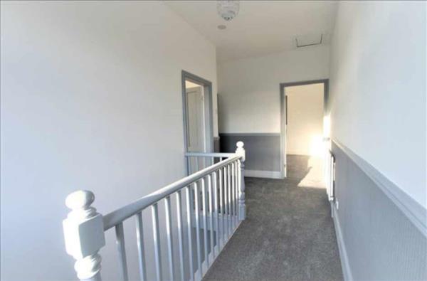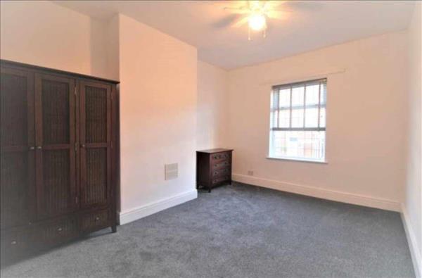 Wood double glazed window to rear, carpet to floor, loft access point, dado rail, smoke alarm and ceiling light fitting.