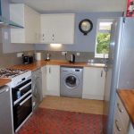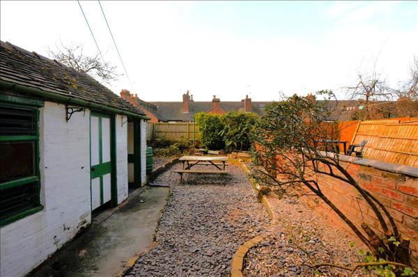 Features a range of wall / base units with contrasting worktops. Includes stainless steel sink with mixer tap, space for free standing cooker with extractor hood above, space/plumbing for washing machine / dishwasher, tiled splash backs, tile to floor and ceiling light fitting. Upvc double glazed windows to side & rear. Door off to: