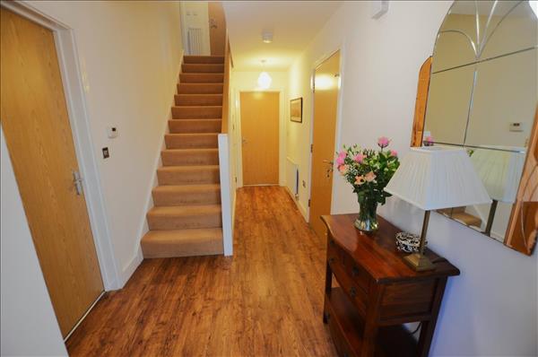 Composite double glazed door to front, luxury vinyl flooring, under stairs cupboard, radiator and ceiling light fittings. Stairs off to first floor.
