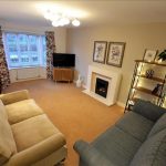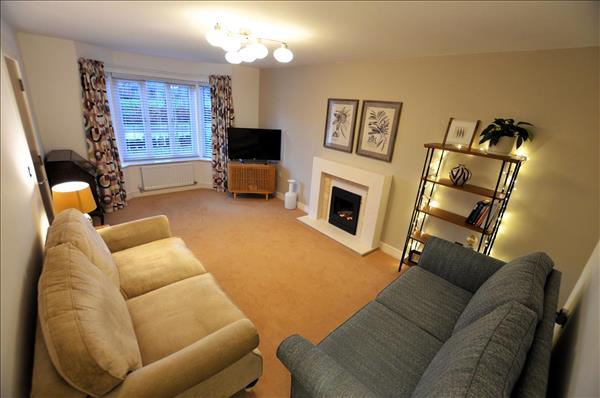 Upvc double glazed window to front, carpet to floor, inset gas fire with hearth & surround, radiators and ceiling light fitting.