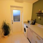 Upvc double glazed door to side. Fitted base units with roll edge worktop, space / plumbing for washing machine, tile to floor, extractor fan and ceiling light fitting. Door off to: