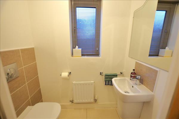 Low level w.c and wash hand basin with mixer tap. Finished with tiled flooring, tiled splash back, radiator, extractor fan and ceiling light fitting. Upvc double glazed window to rear.
