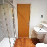 Suite comprising of low level w.c, wash hand basin with mixer tap and enclosure with feature rainfall shower over. Finished with tiled splash backs, luxury vinyl flooring, chrome towel radiator, extractor fan and spotlights to ceiling. Upvc double glazed window to side.