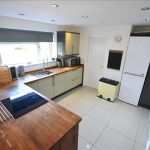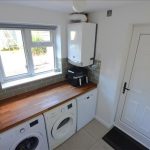 Upvc double glazed window to rear, Upvc door to side, fitted worktop providing space/plumbing for washing machine & dryer (or dishwasher), tiled splash backs, tile to floor, wall mounted combination gas central heating boiler and ceiling light fitting. Door off to: