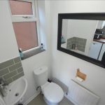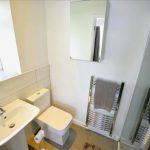 Suite comprising of low level w.c, wash hand basin with mixer tap and double walk in shower. Finished with tile to floor, part tiled walls, chrome towel radiator, extractor fan and spotlight to ceiling. Upvc double glazed window to side.