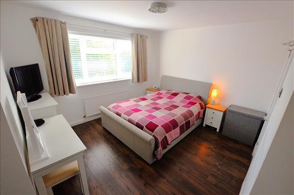 Upvc double glazed window to front, laminate wood effect flooring, built in sliding door mirrored wardrobes, radiator and ceiling light fitting. Door off to: