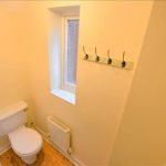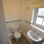 Low level w.c, wash hand basin, laminate flooring, fuse box, radiator and ceiling light fitting. Upvc double glazed window to side.